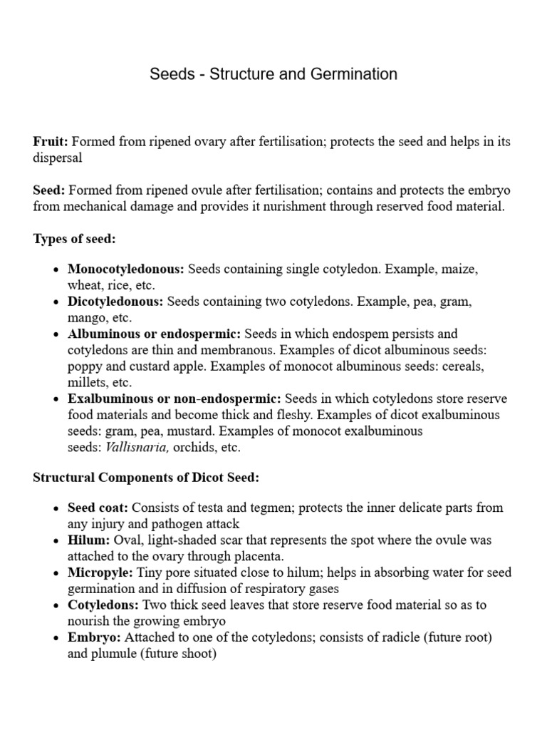 Fruit: Formed from ripened ovary after fertilisation; protects the seed and helps in its