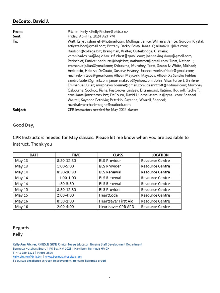 Subject: CPR Instructors needed for May 2024 classes