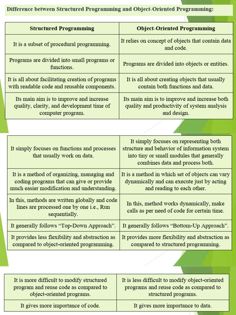 Difference between Structured Programming and Object-Oriented Programming: