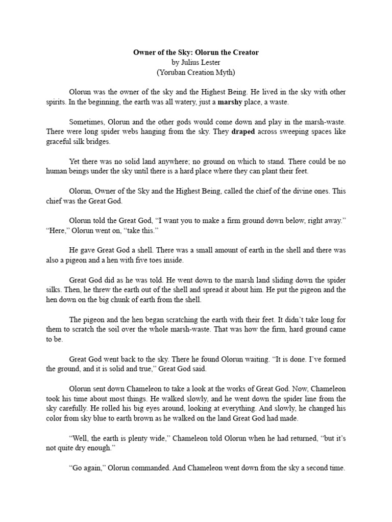 “Well, the earth is plenty wide,” Chameleon told Olorun when he had returned, “but it’s