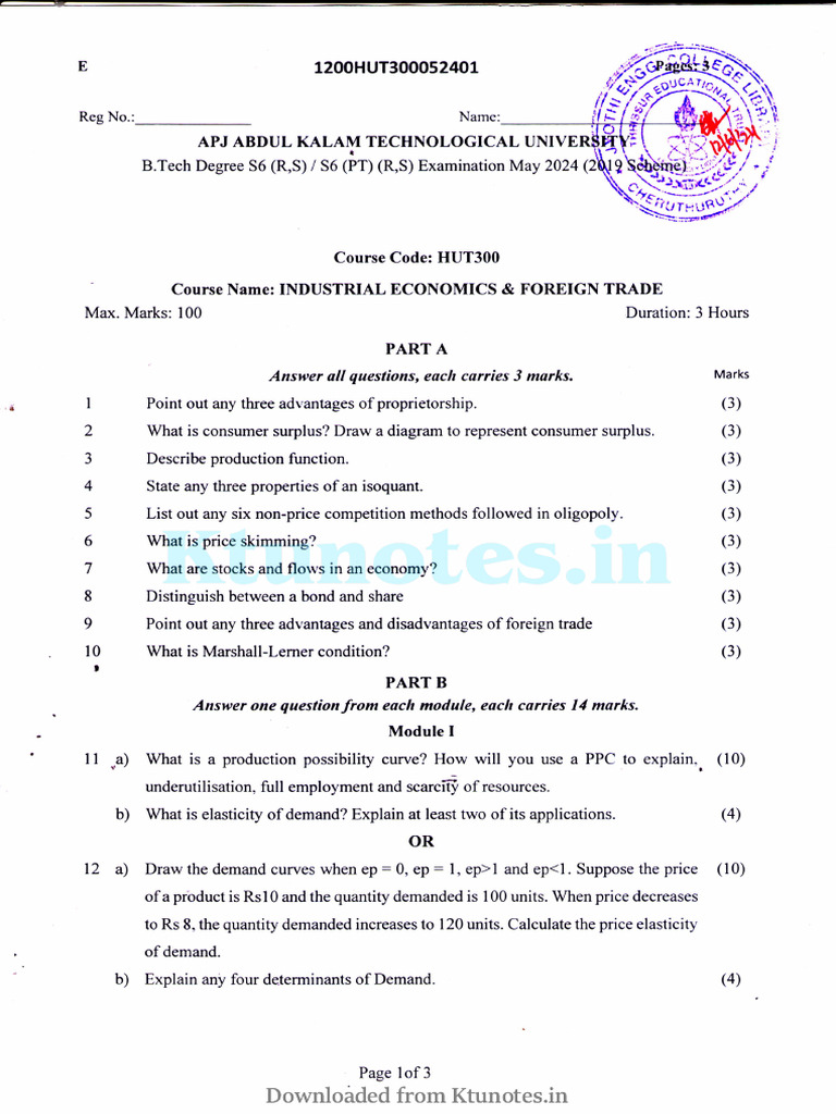 - Course Name: INDUSTRIAL ECONOMICS & FOREIGN TRADE
