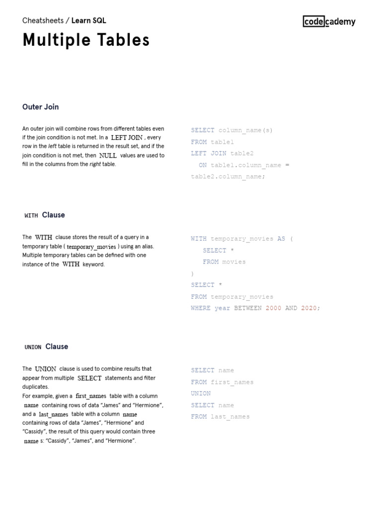 Cheatsheets / Learn SQL