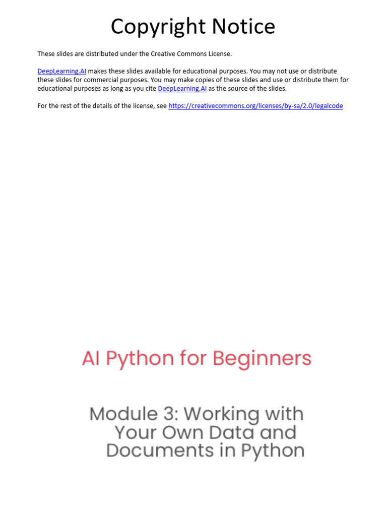 educational purposes as long as you cite DeepLearning.AI as the source of the slides.