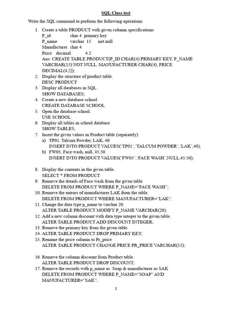 Ans: CREATE TABLE PRODUCT(P_ID CHAR(4) PRIMARY KEY, P_NAME