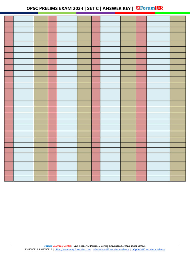 OPSC PRELIMS EXAM 2024 | SET C | ANSWER KEY |