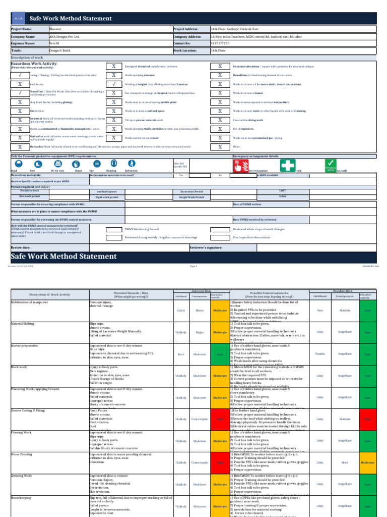 Safe Work Method Statement