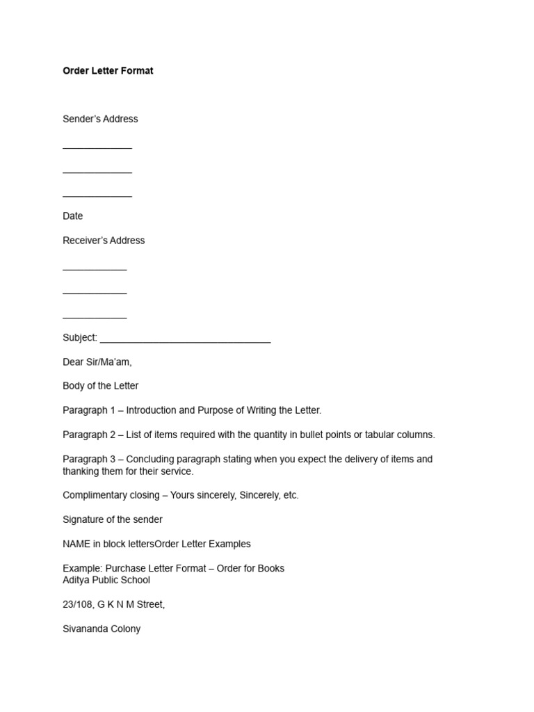 Order Letter Format