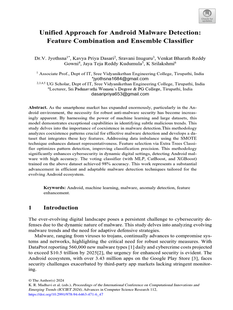 A. Alzubi et al. [7] introduce a novel approach to Android malware detection by com-