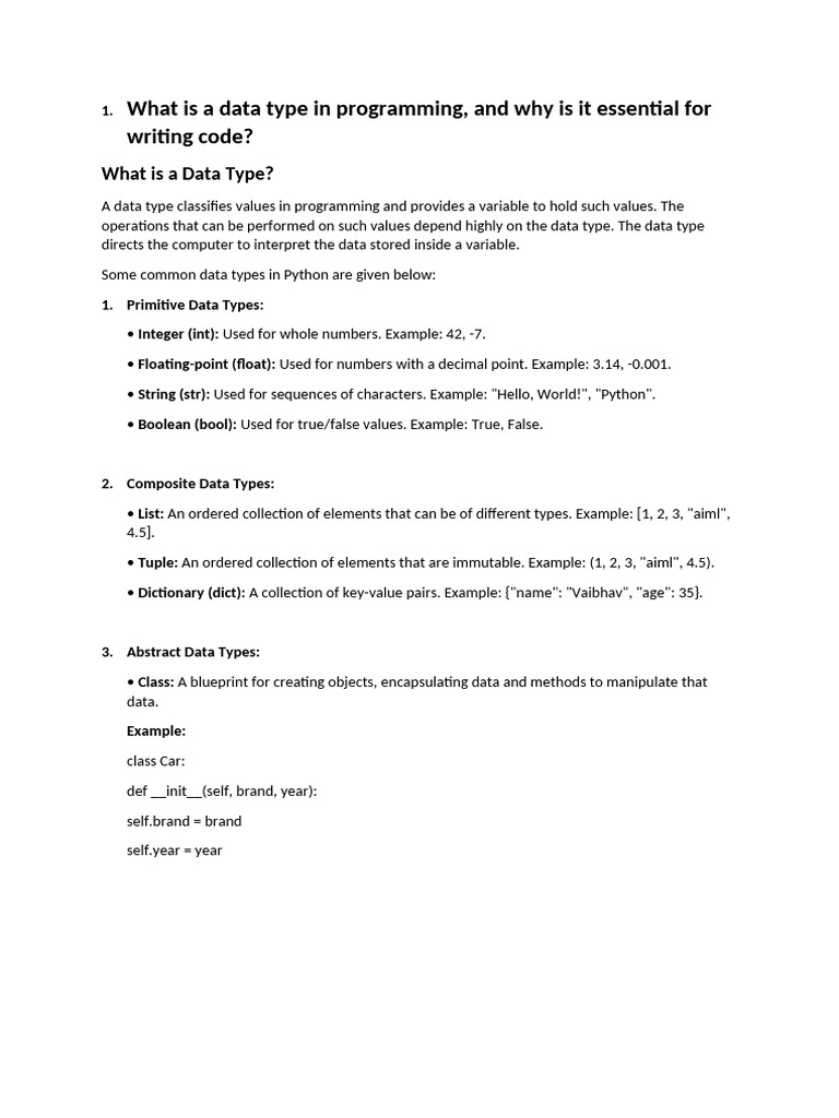 What is a data type in programming, and why is it essential for