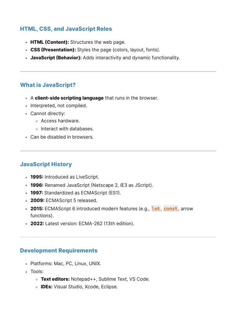 Here are the JavaScript Notes with the added explanation of the difference between