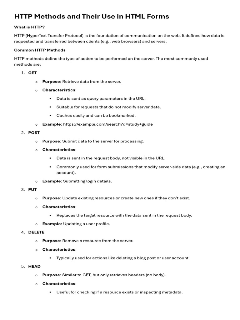 HTTP Methods and Their Use in HTML Forms