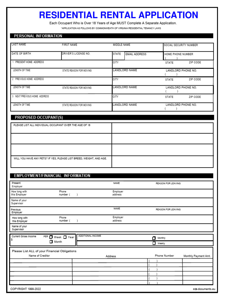 Each Occupant Who is Over 18 Years of Age MUST Complete A Separate Application.