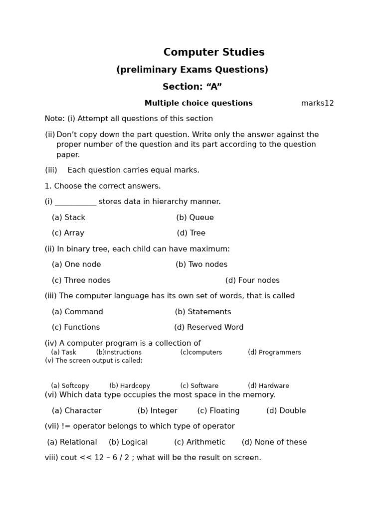 viii) cout << 12 – 6 / 2 ; what will be the result on screen.