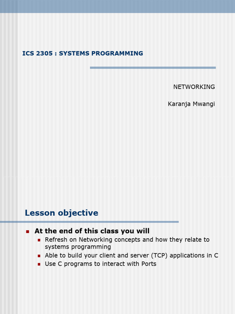 Example int sockfd = socket (AF_INET, SOCK_STREAM, 0);