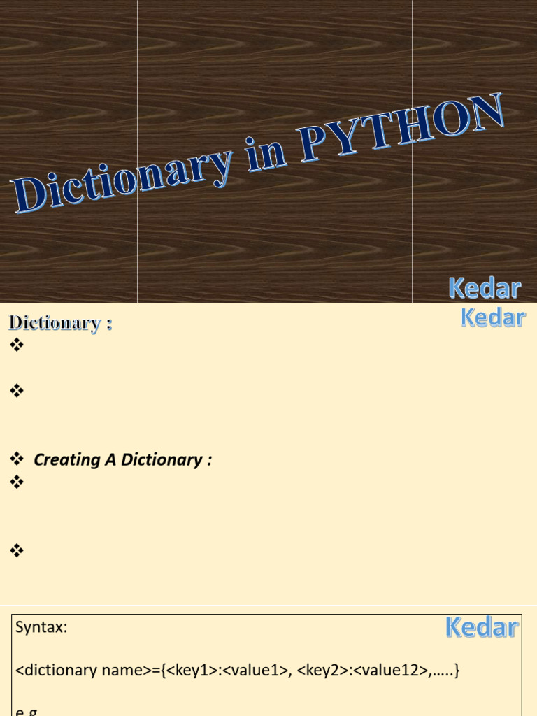 print("Type-%s"%type(D)) Type-<class 'dict'>