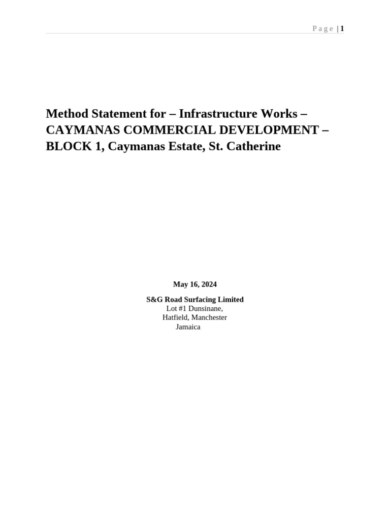 Method Statement for – Infrastructure Works –