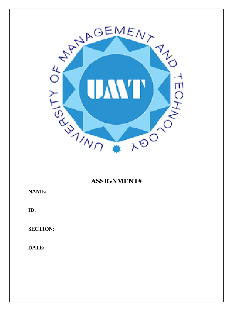 The document appears to be a template for an assignment, including fields for the name, ID, section, and date. It does not contain any specific content or information beyond these placeholders. Therefore, it serves as a basic organizational tool for students to fill out their details.