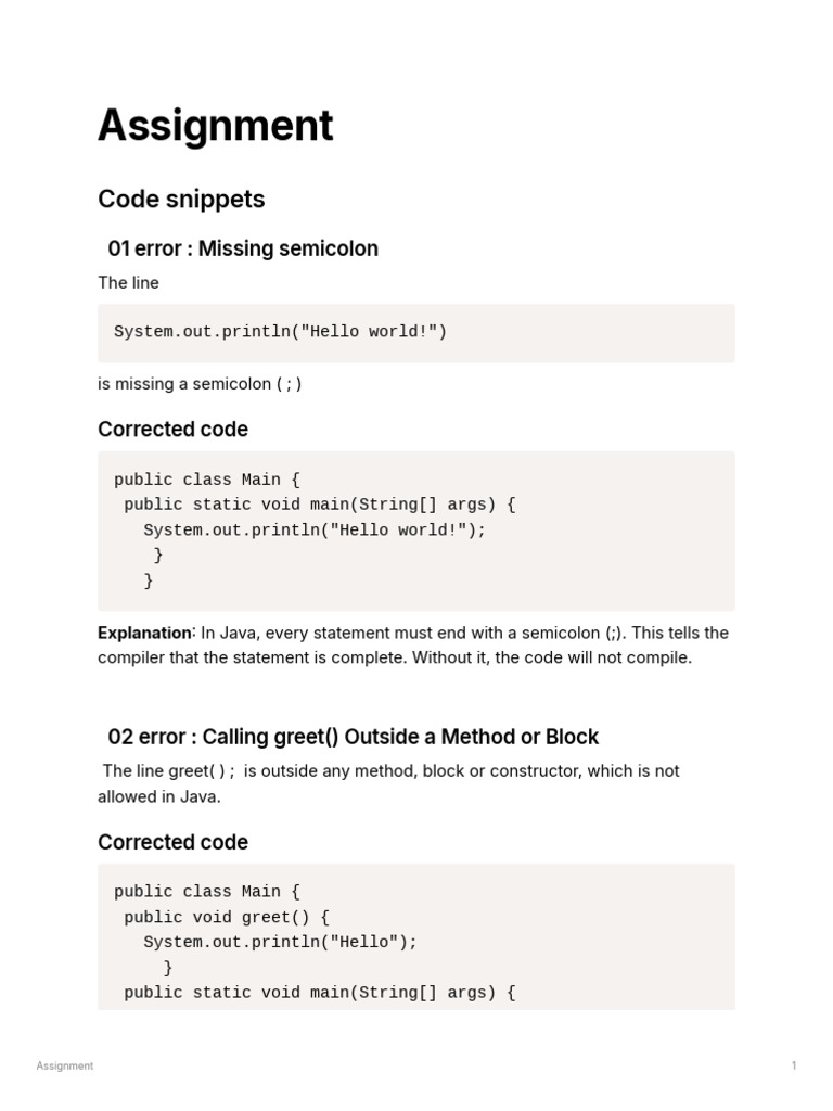 Explanation: In Java, method calls like greet(); must be placed inside a method