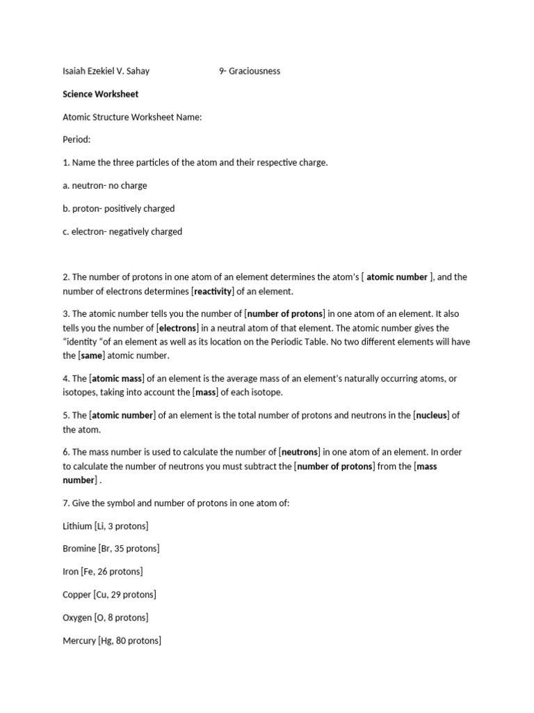 Atomic Structure Worksheet Name: