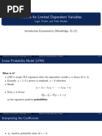 • Linear probability model with binary dependent variable 𝑦𝑦 = 0 or 1.