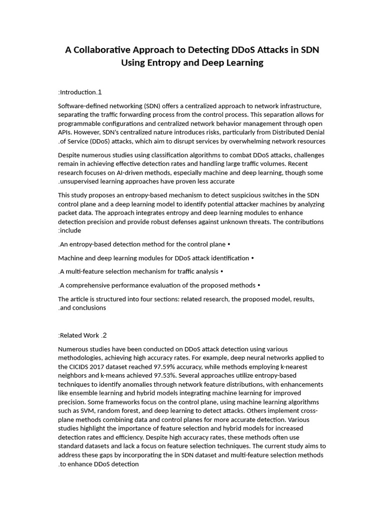 through entropy-based anomaly detection. The SDN dataset, processed and reduced to the