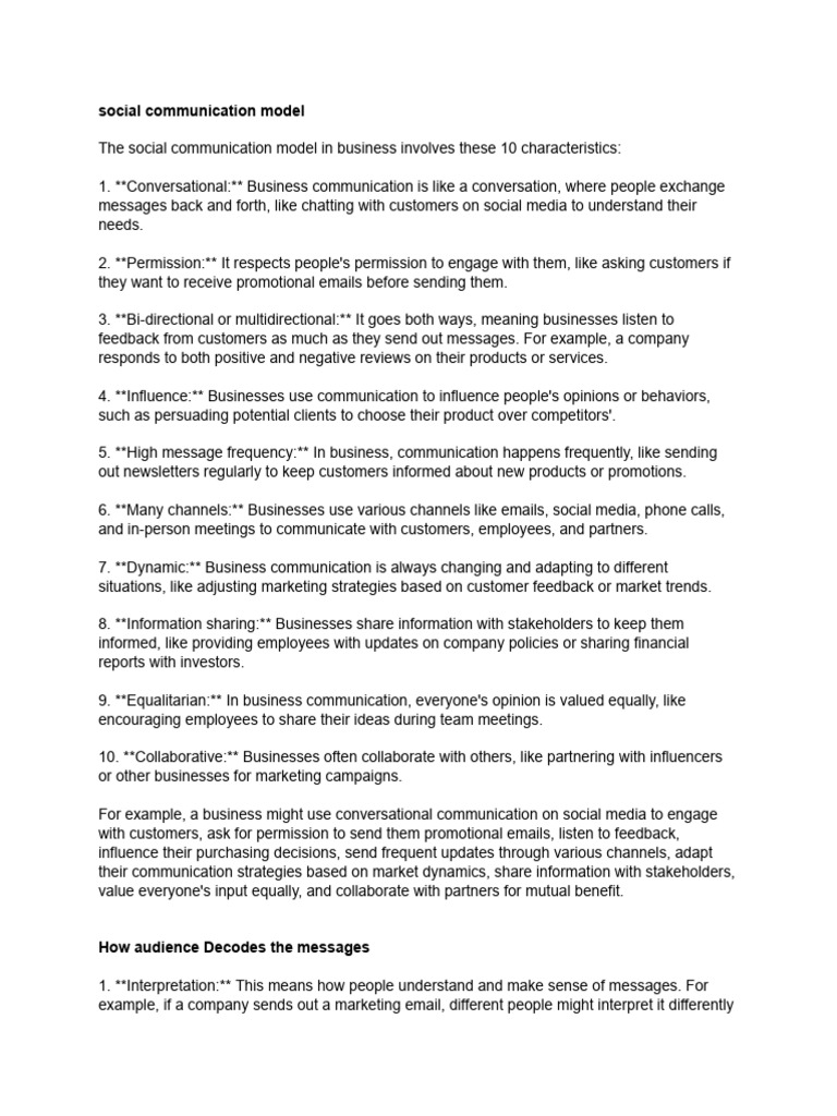 1. **Conversational:** Business communication is like a conversation, where people exchange