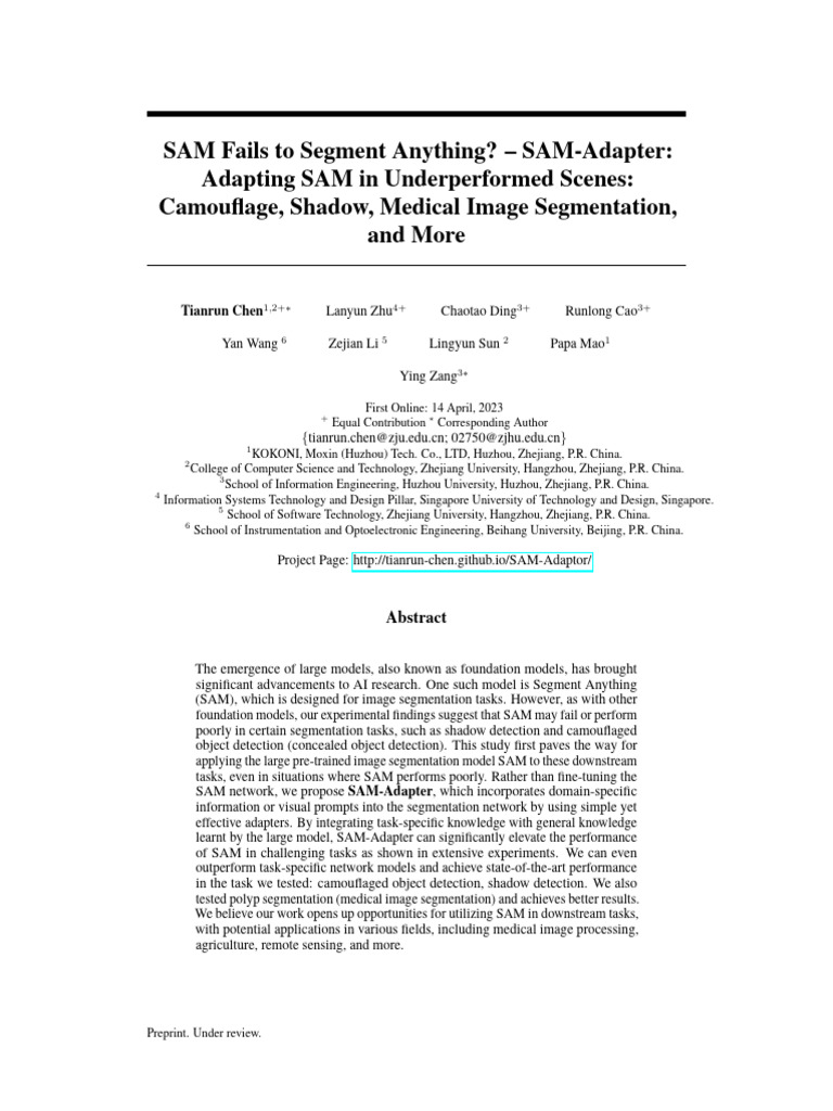 • Second, we are the first to propose the adaptation approach, SAM-Adapter, to adapt SAM