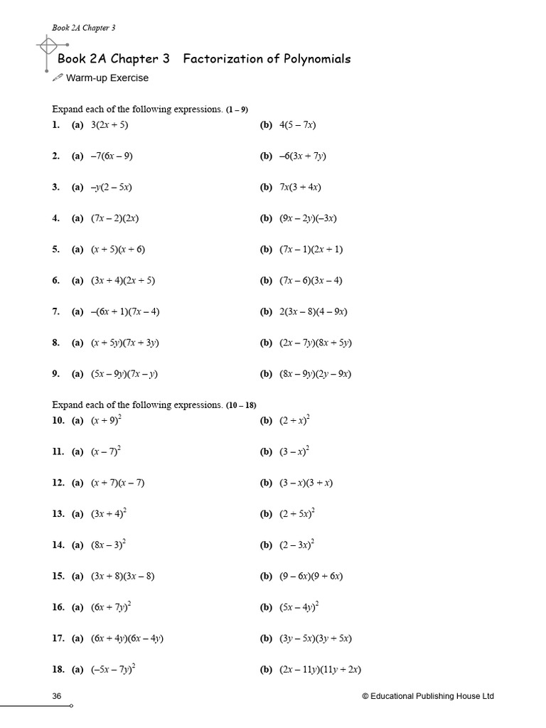 3.2 Factorization by Using the Identities of Difference of Two Squares and Perfect Square