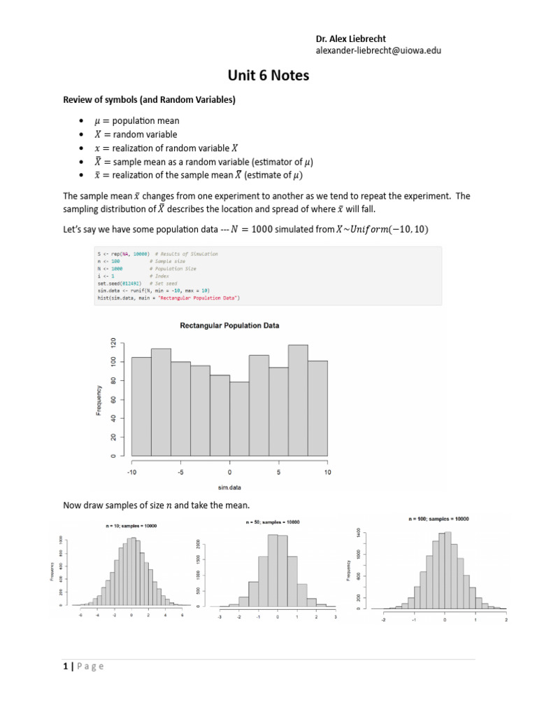 Let’s say we have some population data --- 𝑁 = 1000 simulated from 𝑋~𝑈𝑛𝑖𝑓𝑜𝑟𝑚(−10, 10)
