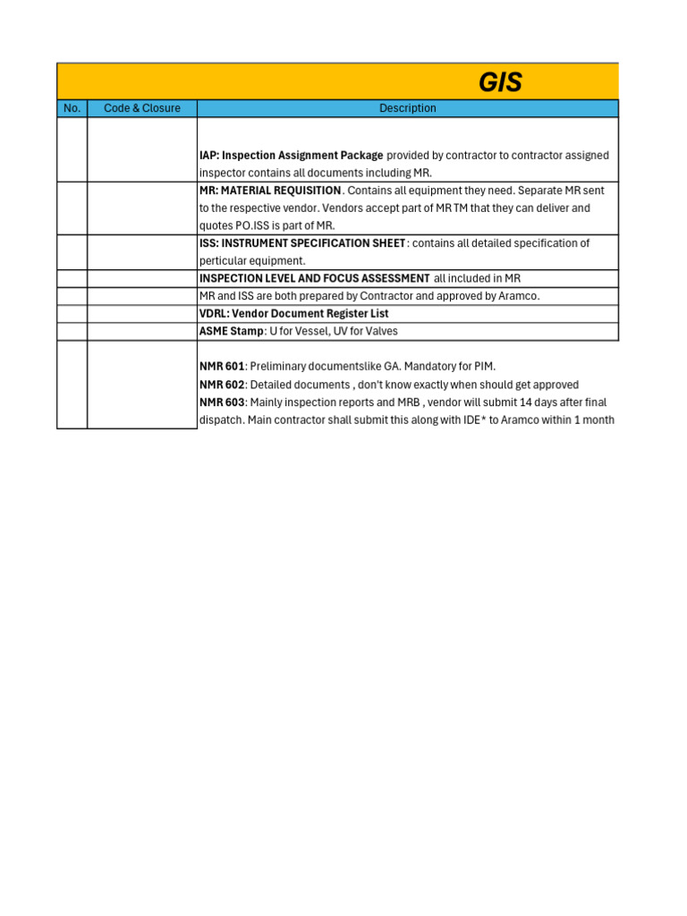 dispatch. Main contractor shall submit this along with IDE* to Aramco within 1 month