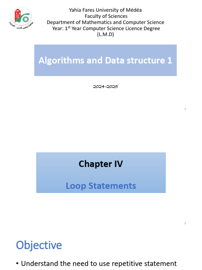 We introduce 3 kinds of loop statements which belong to 2 main types :