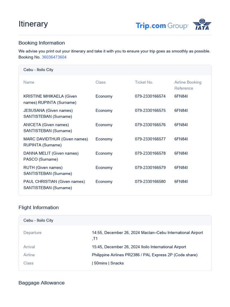 Arrival 15:45, December 26, 2024 Iloilo International Airport