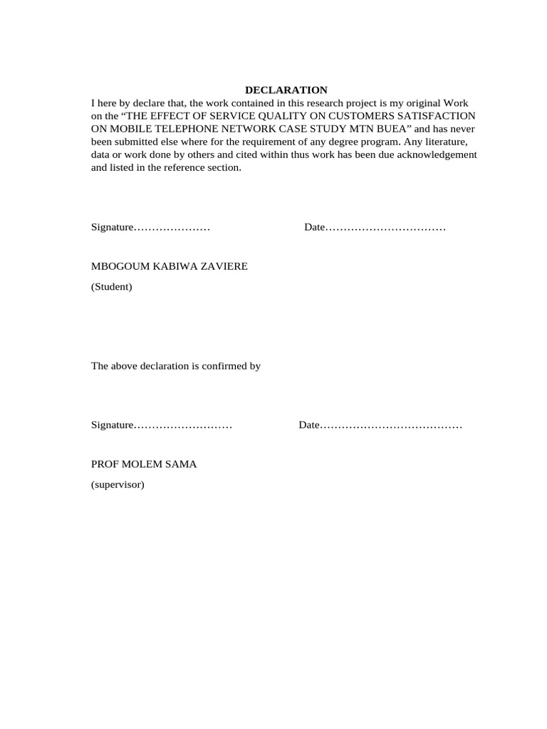 ON MOBILE TELEPHONE NETWORK CASE STUDY MTN BUEA” and has never