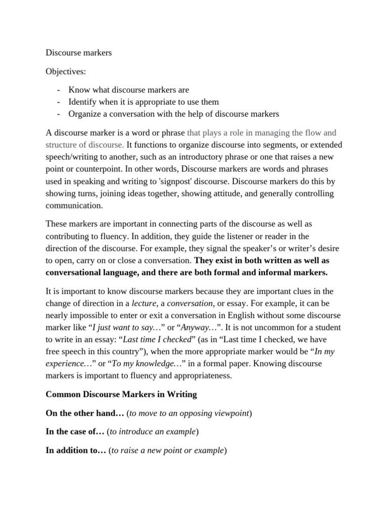 - Know what discourse markers are