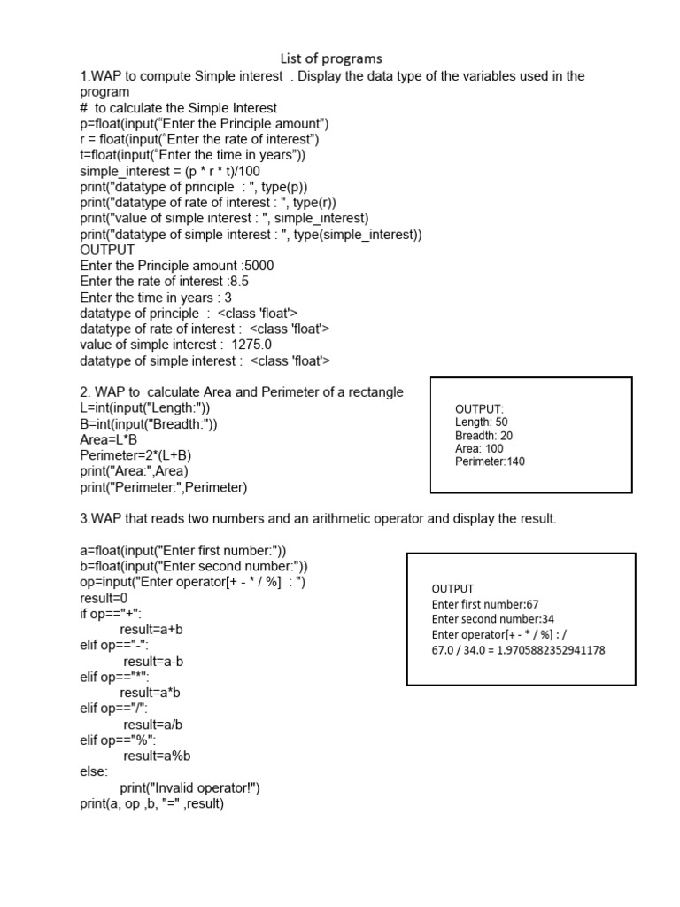1.WAP to compute Simple interest . Display the data type of the variables used in the
