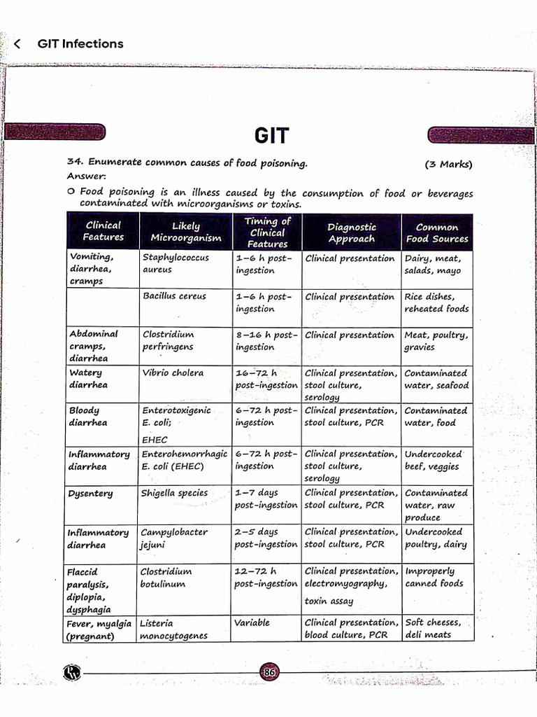34. Enumerate common causes of food poisoning. (3 Marks)