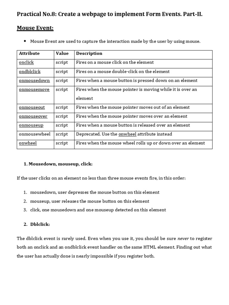 ondblclick script Fires on a mouse double-click on the element