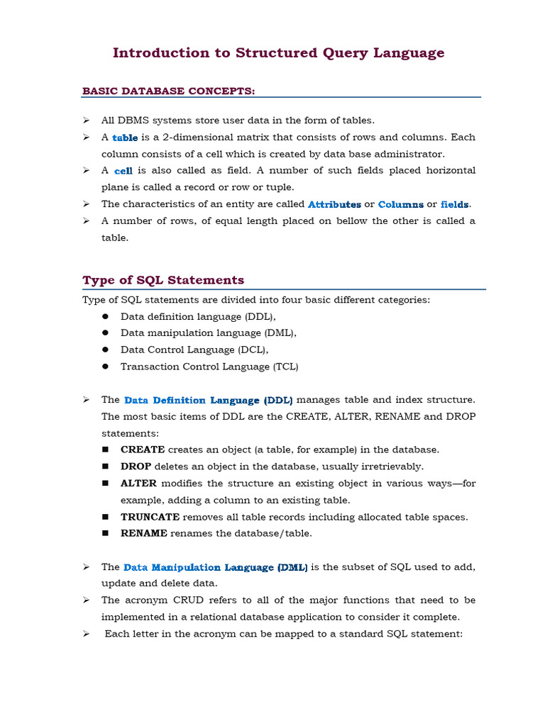 The most basic items of DDL are the CREATE, ALTER, RENAME and DROP