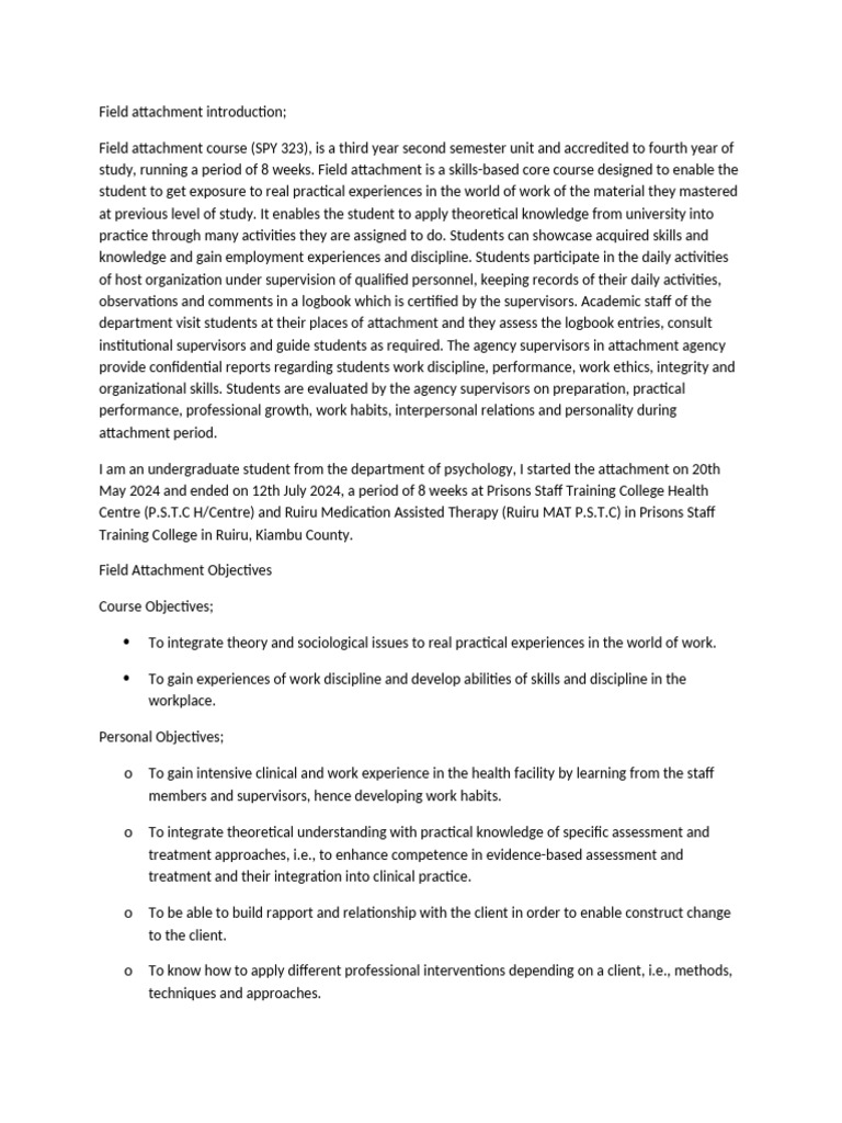 study, running a period of 8 weeks. Field attachment is a skills-based core course designed to enable the