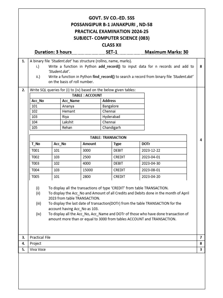 PRACTICAL EXAMINATION 2024-25