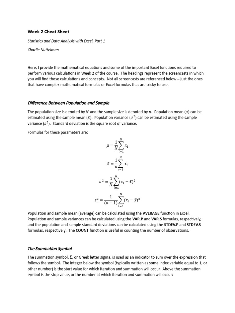 perform various calculaons in Week 2 of the course. The headings represent the screencasts in which