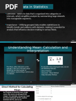 Populaon and sample mean (average) can be calculated using the AVERAGE funcon in Excel.