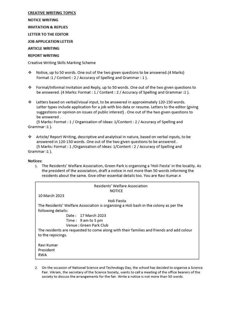 NOTICE WRITING