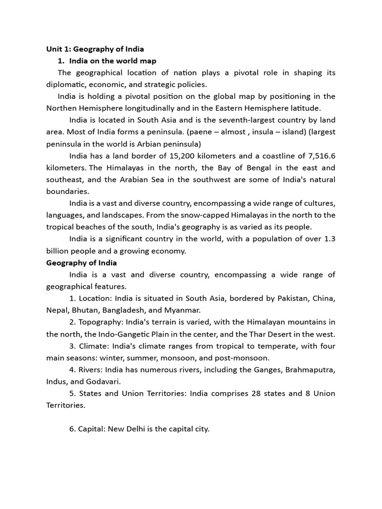 Unit 1: Geography of India