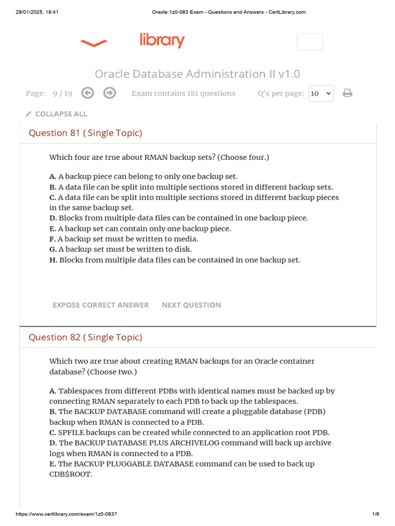 28/01/2025, 19:41 Oracle 1z0-083 Exam - Questions and Answers - [Link]