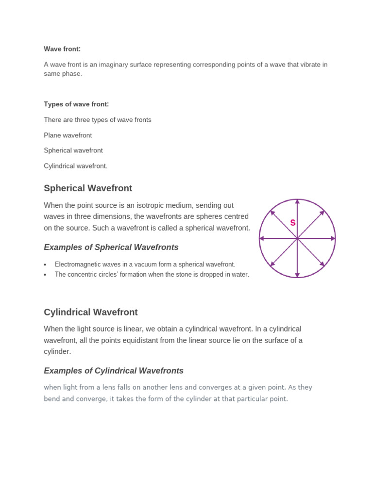 Types of wave front: