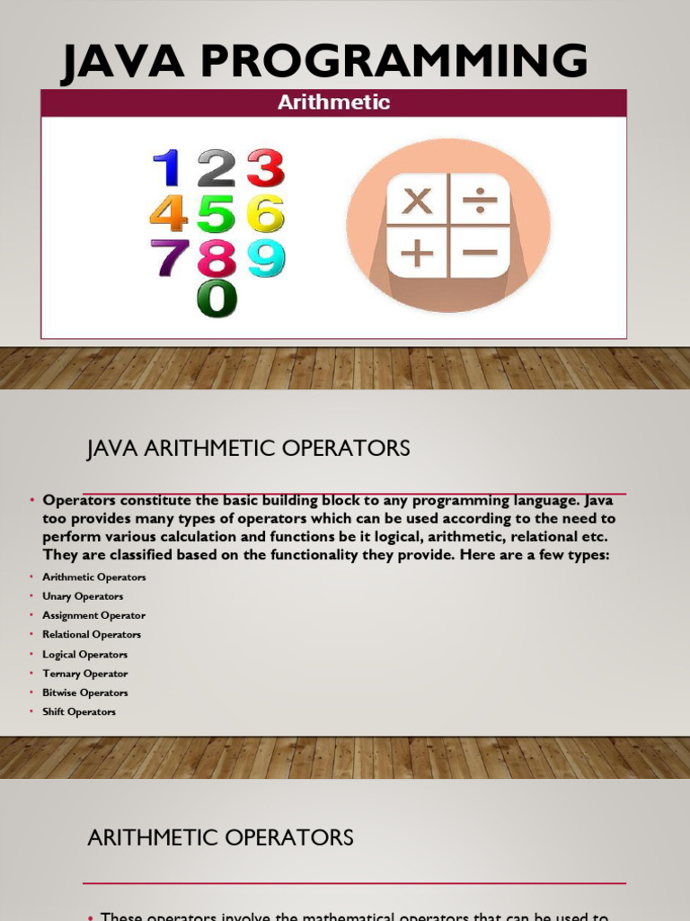 • Create a program which will add, subtract, multiply and divide the following numbers.