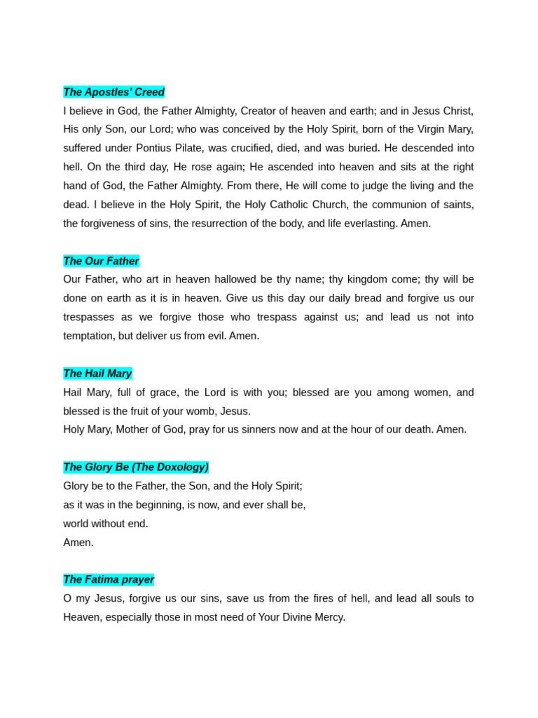 Our Father, who art in heaven hallowed be thy name; thy kingdom come; thy will be