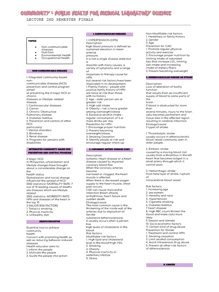 I. CARDIOVASCULAR DISEASES Non-Modifiable risk factors
