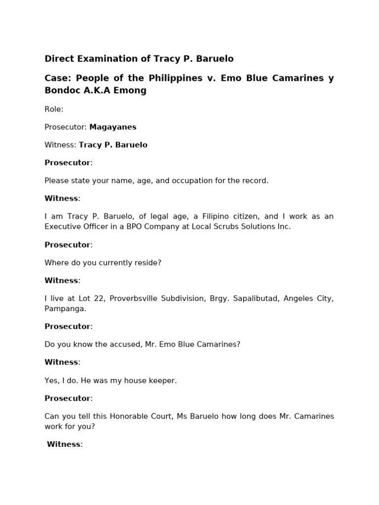 Cross-Examination of Emo Blue Camarines y Bondoc: